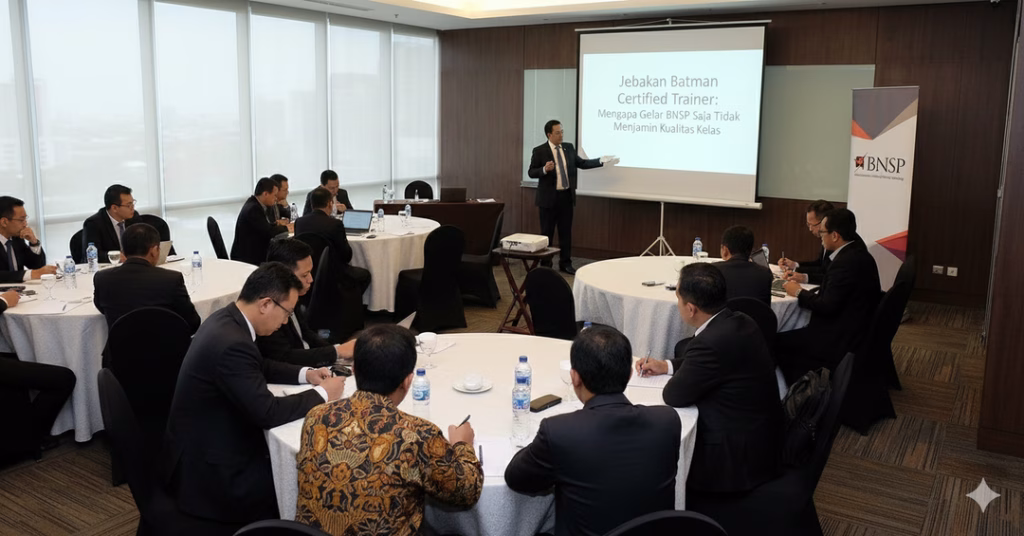 Pernah ikut pelatihan yang promosinya heboh karena trainernya berlabel “Certified Trainer BNSP”, tetapi ketika masuk kelas, materinya biasa saja, penyampaian kurang mengalir, bahkan peserta justru merasa tidak mendapatkan apa-apa? Jika iya, berarti Anda pernah jatuh ke dalam apa yang sering disebut sebagai jebakan batman Certified Trainer. Fenomena ini semakin marak belakangan ini, terutama karena sertifikasi mulai dianggap sebagai simbol mutu, padahal tidak selalu begitu kenyataannya. Gelar memang penting, tetapi gelar bukan jaminan otomatis bahwa seseorang mampu mengajar dengan efektif dan membuat peserta benar-benar memahami materi.
